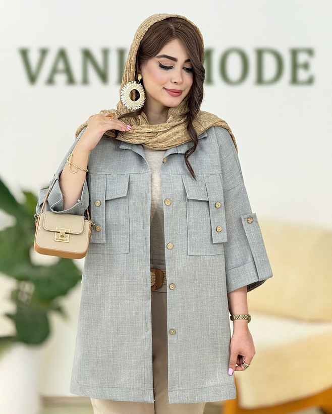 شومیز یقه مردانه دکمه چوبی استین برگشتی✅
